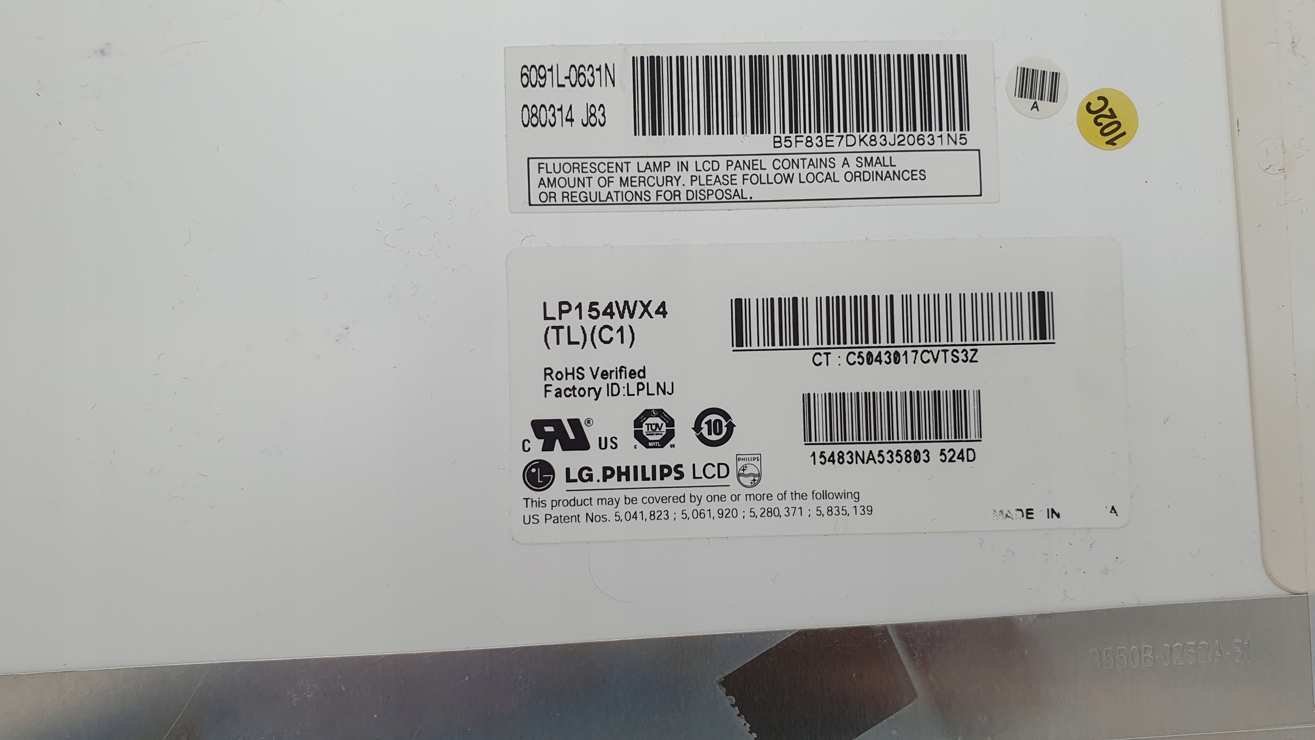 Matryca z widocznym wypaleniem na dole ekranu ciągnącym się do około 60% wysokości zajmuje około 40% powierzchni matrycy.